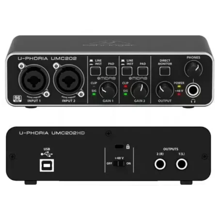 The Behringer UMC202HD USB Audio Interface is a compact and versatile audio interface designed for home recording studios and mobile setups. With its high-quality audio performance, dual microphone preamps, and convenient connectivity options, it provides a reliable solution for capturing and monitoring professional-grade audio.Behringer UMC202HD USB Audio interface
