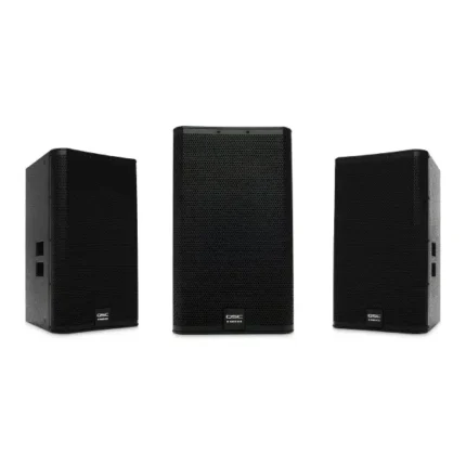 The QSC115 is a trapezoidal, two-way loudspeaker using a 15-inch, 500W, die cast aluminum frame woofer with a 3.5-inch voice coil. It is intended for use when high-power and authoritative low-end are needed from a full-range loudspeaker. A 2.8” compression driver attached to the 75° DMTTM waveguide assures that even distant listeners will be well covered.