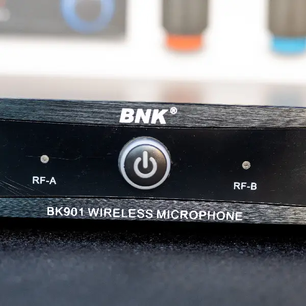 One of the key highlights of the Bnk 901 is its dual-channel receiver, allowing you to use two microphones simultaneously. This feature is particularly useful for duets, interviews, or applications that require multiple microphones. The receiver unit incorporates an easy-to-read LCD display, providing clear information on frequency, audio levels, and battery status for each microphone, ensuring efficient control and monitoring during performances.