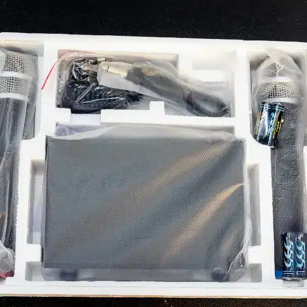 - Rugged Microphone Design: The handheld microphone is built to withstand the rigors of frequent use, featuring a sturdy metal mesh grille and durable plastic body.