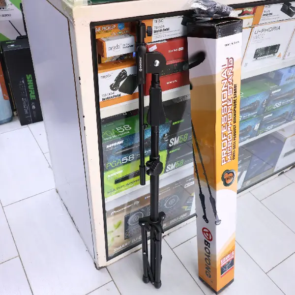 [vc_row][vc_column][vc_column_text]The BOYONG BY-789 Mic Stand is a versatile and durable microphone stand designed to meet the needs of both amateur and professional audio enthusiasts. With its sturdy construction and user-friendly design, this mic stand offers a reliable solution for various recording and performance settings.