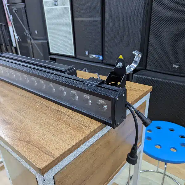 The LED Wall Wash 6IN1 RGBWA+UV is a versatile linear LED fixture designed to deliver vibrant color washes across walls, stages, and large surfaces. It features 6-in-1 LED technology, which includes Red, Green, Blue, White, Amber, and UV (ultraviolet) colors, allowing for an extended palette of rich, saturated colors and subtle pastels as well as unique UV effects.