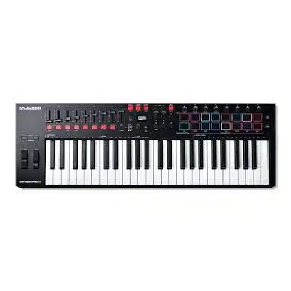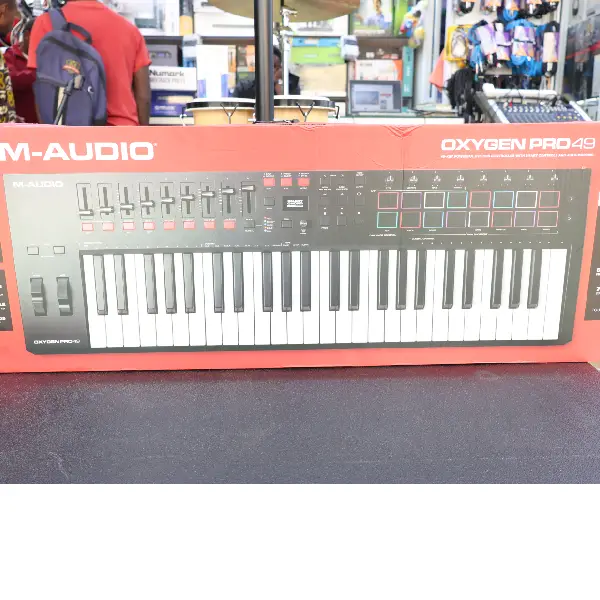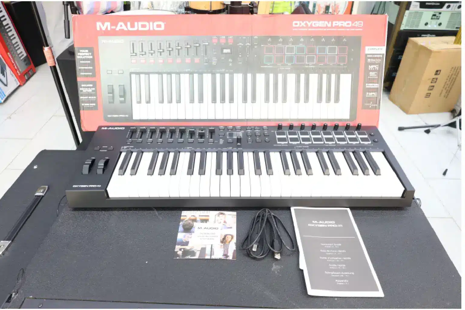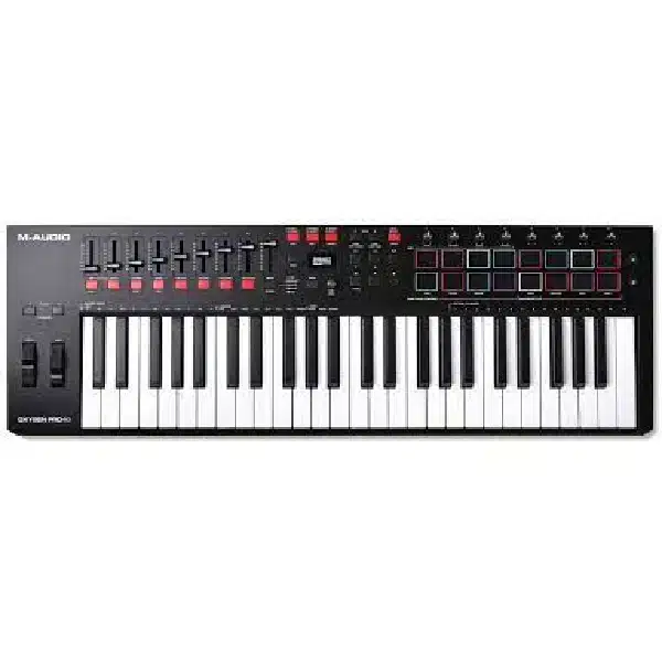 The M-Audio Oxygen Pro 49 has a sleek and professional look, with a matte black finish that resists fingerprints and smudges. Its layout is intuitive, with controls logically positioned for ease of use. The keyboard is relatively compact and lightweight, making it a good option for both studio and live performance environments.