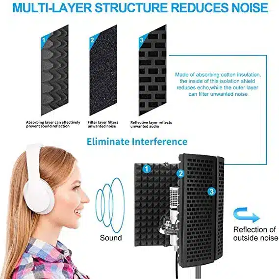 - Effective Noise Reduction: The shield reduces unwanted noise and echoes by creating a controlled acoustic environment, ensuring a clear and focused recording.