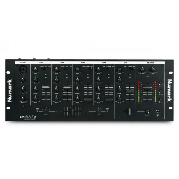 The Numark CM200 DJ mixer is an affordable solution for the mobile DJ or club, bar and restaurant installation. The CM200 features 5 channels with 3 turntable inputs and 10 line level inputs. A 3-band EQ is provided for frequency contouring on all channels. Outputs include balanced XLR and RCA phone connections on Master, Zone and Record outputs. The CM200 conveniently mounts into a standard 19-inch rack for easy installation, storage and transport.