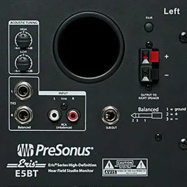 PreSonus Eris E5 BT Active Media Reference Monitors with Bluetooth provide a clear, accurate frequency response and a wide variety of inputs.