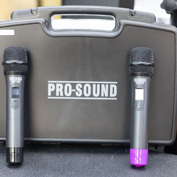 - Regularly replace the AA batteries in the microphones to ensure uninterrupted performance.