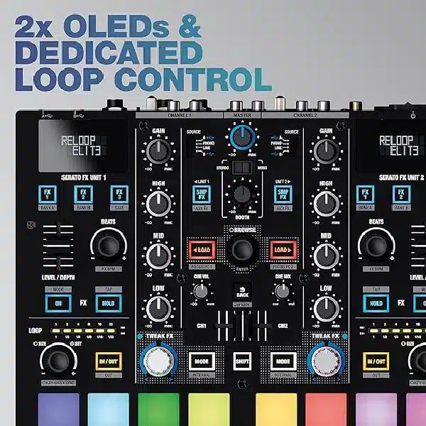 Overall, the Reloop Elite is aimed at DJs looking for a powerful, versatile, and professional-grade mixer that can handle both traditional analog setups and digital performance with ease.