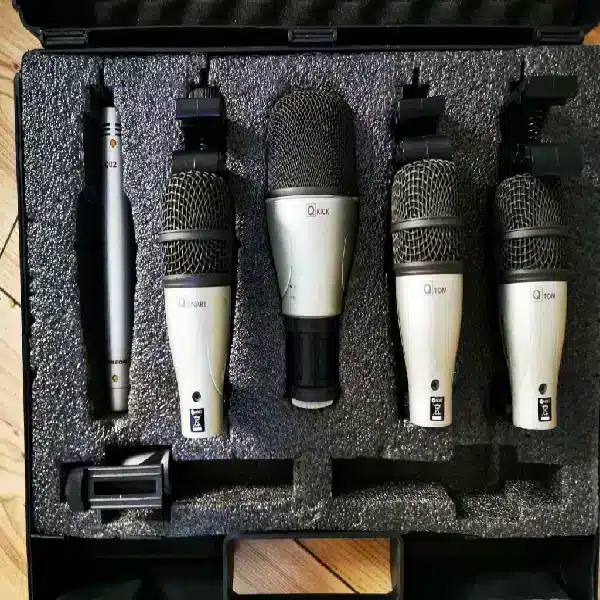 - One QKICK mic with mic stand swivel mount, One QSNARE mic with rim clip
