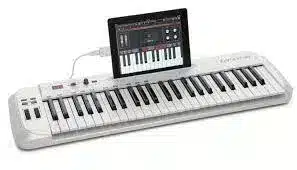 Designed with the iPad in mind, the Carbon 49 features an integrated iPad slot. When combined with the iPad using Apple’s iPad Camera Connection Kit or Lightning to USB Camera Adapter, the Carbon 49 is a great tool for making music on-the-go. Use it with your favorite music and synth iPad apps that support MIDI controllers, and for additional mobility, the Carbon 49 can be directly powered by the iPad.
