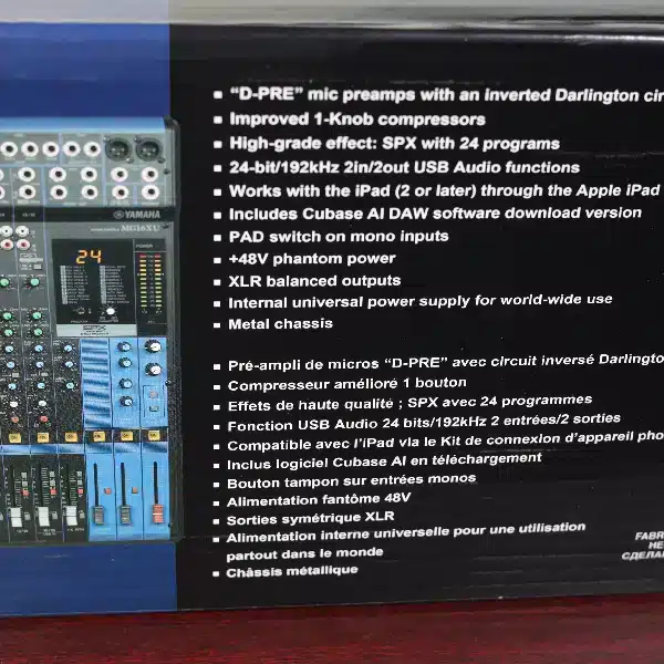• D-PRE Mic Preamps: The MG16XU is equipped with Yamaha’s renowned D-PRE preamps, featuring an inverted Darlington circuit design. These preamps deliver exceptional clarity, warmth, and detail, making them ideal for capturing vocals, instruments, and other audio sources with accuracy.