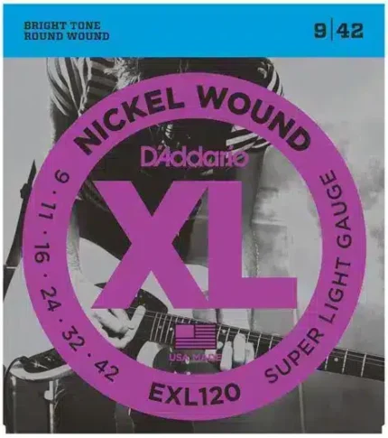 The D'Addario EXL120 Nickel Wound Super Light Gauge, 09-42, is a set of high-quality electric guitar strings designed to deliver exceptional tone, playability, and longevity. These strings are renowned for their bright and balanced sound, making them a popular choice among a wide range of guitarists across various genres.